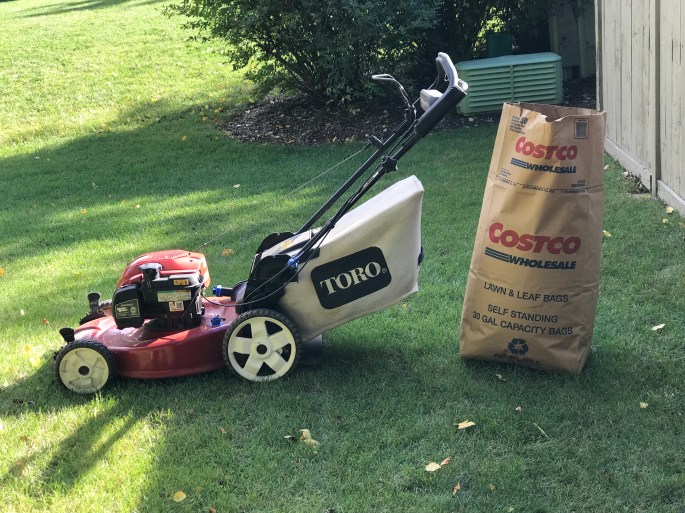 With inspiration from our neighbors, in 2017 we invested in a lawn mower and trimmer. Soon we picked up other supplies for the trade – refuse bags (if you are not mulching your cut grass), city pick-up stickers, gasoline can and gasoline.