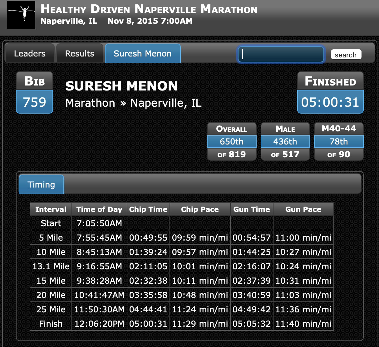Growing up, in school and college, I competed in many sports. However, distance (>3 miles) running was not fun for me. It was a punishment that my dad or my cricket/soccer coach imposed on me! I am flat footed (very low foot arch) and mentally carried all the negative connotations associated with it. I started distance running after moving to the US in 2004 and never been formally coached or trained.