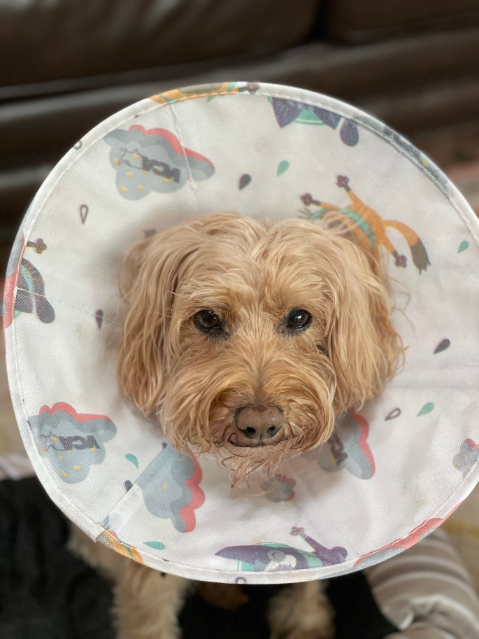My saintly boy, Bambi, was attacked by a larger dog on March 4th. It was unprovoked and in a matter of 20 seconds, he was brutally mauled. We rushed him immediately to VCA Arboretum View Animal Hospital where he underwent a surgery. A prognosis was possible only after the surgery. He was away from us for a heart wrenching 14 hours. We went to see him the next day and despite being drugged up, he managed to take a few steps and walk over to us. We were all on the floor of the recovery room, holding back our tears and gently caressing him. That scene is etched in my memory as we all worried about him making it. Fast forward to today, he has recovered full mobility and is still the best behaved Menon!