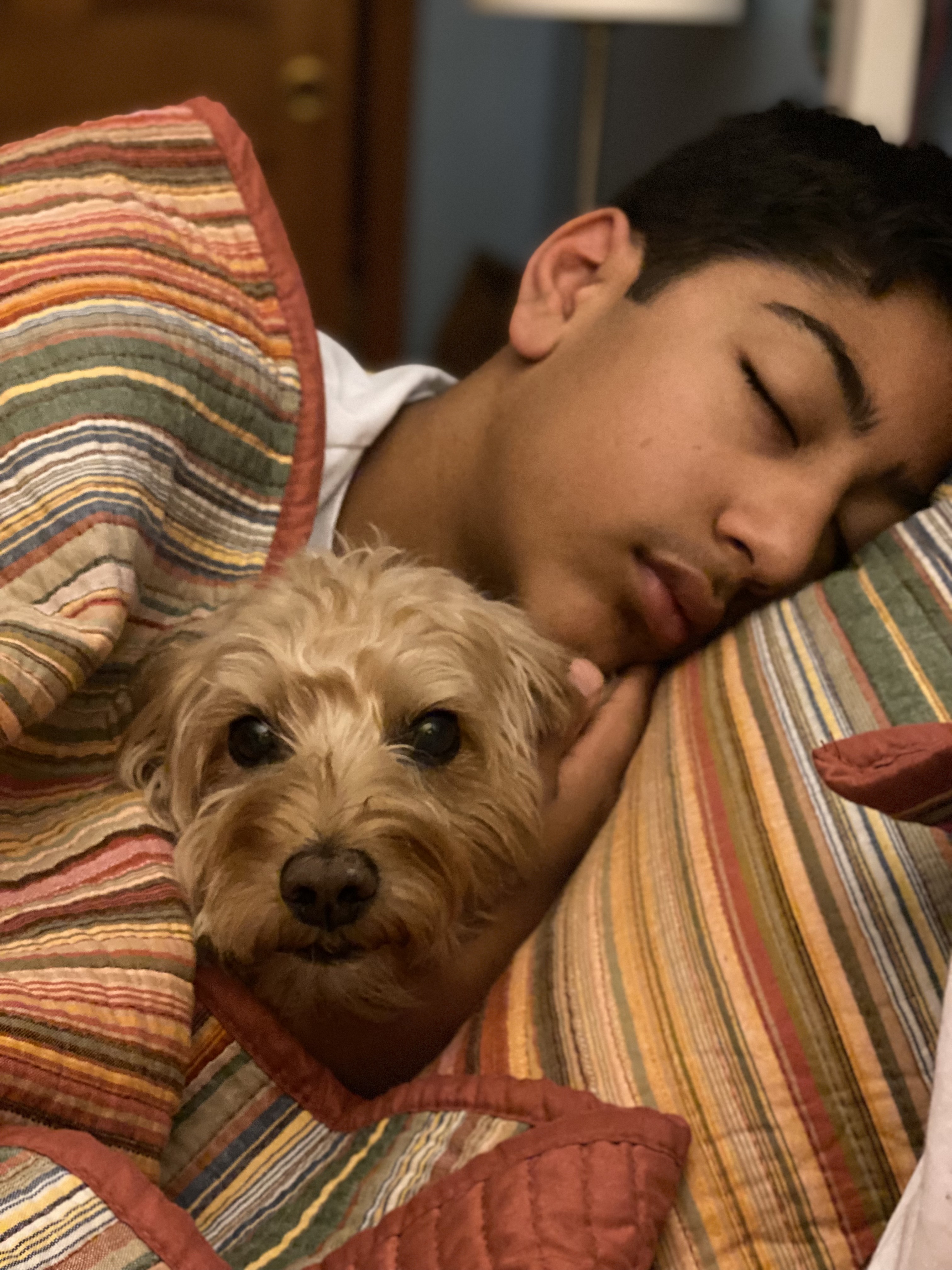 Until the last year of his life, every time I returned home from a business trip or from the office, Bambi would be waiting by the door. His excitement would peak as he jumped up to my chest. There were occasions when I would be on an official call, and my colleagues would know I had entered the house because Bambi would be “talking” to me and demanding attention. By the time I set my bag and jacket down, he would be in my arms, face to face. He would try to lick my nose and lips, and when I looked away, he would begin licking my ear—which I was perfectly fine with.